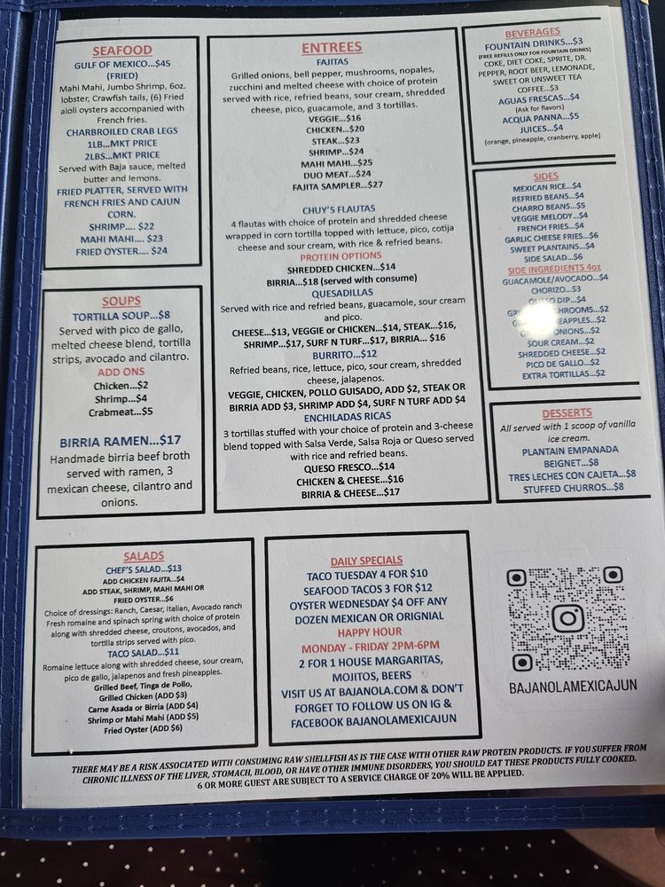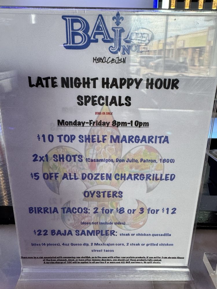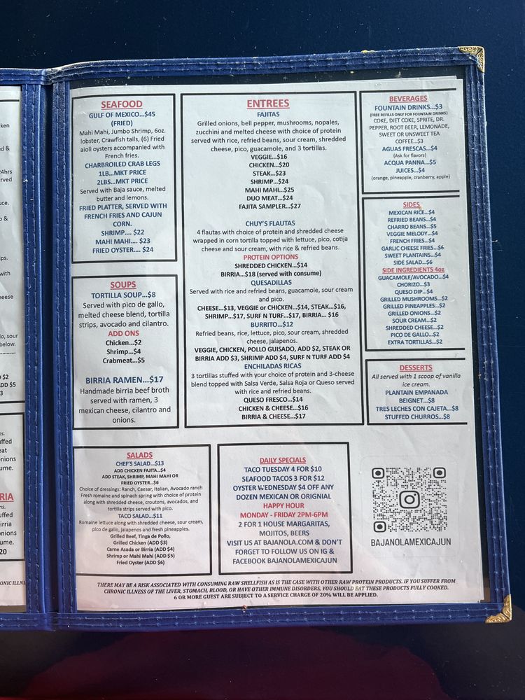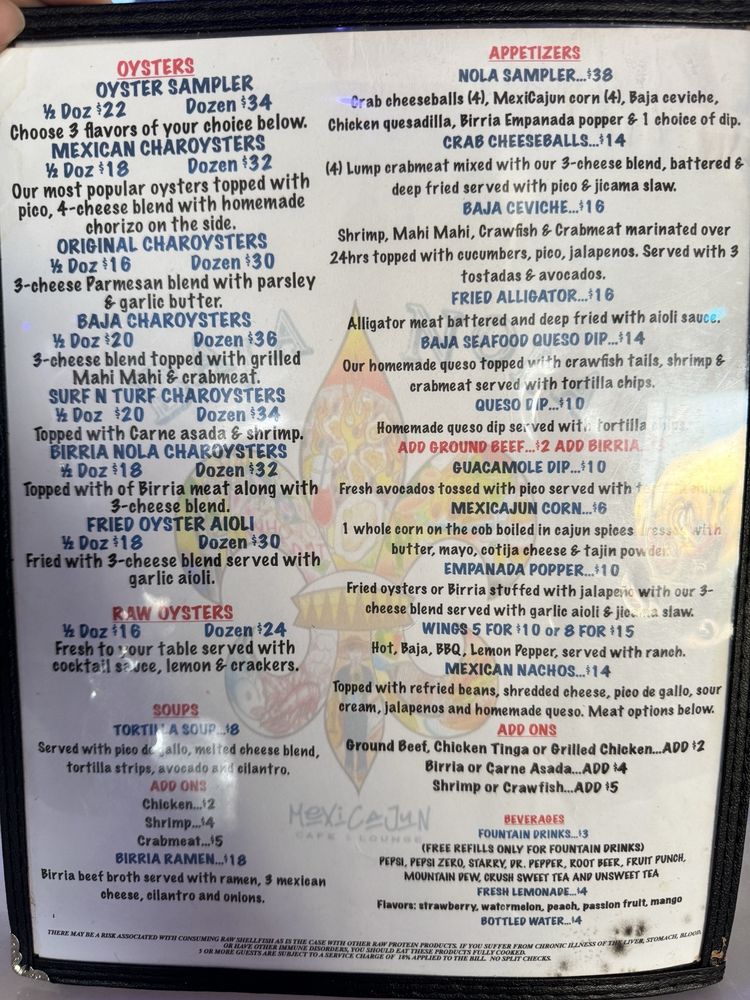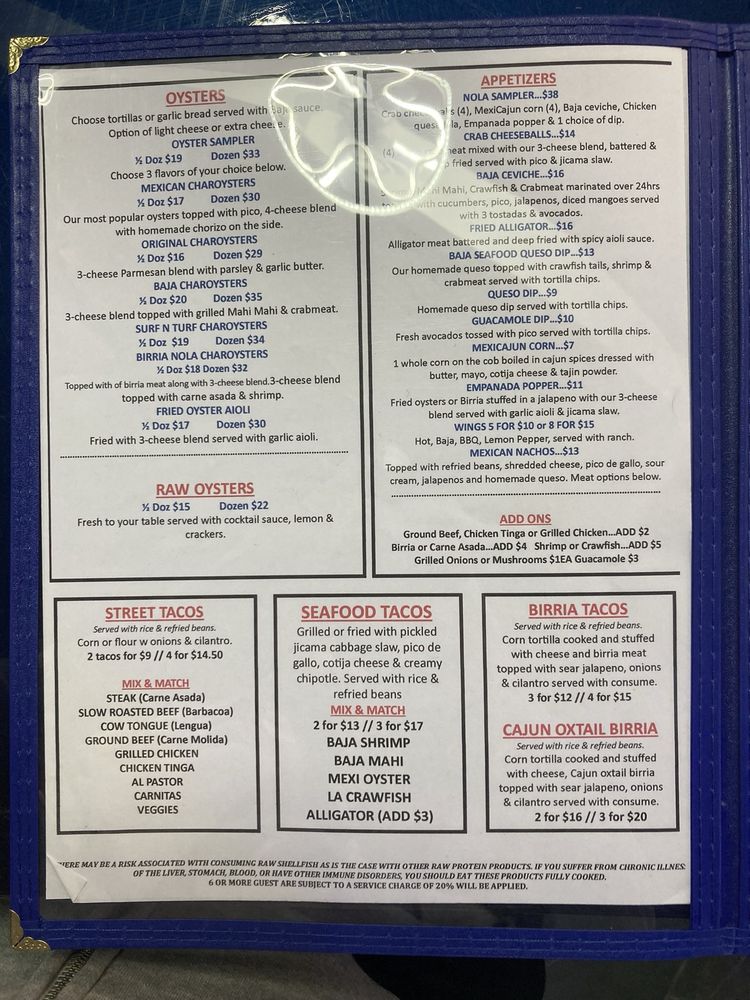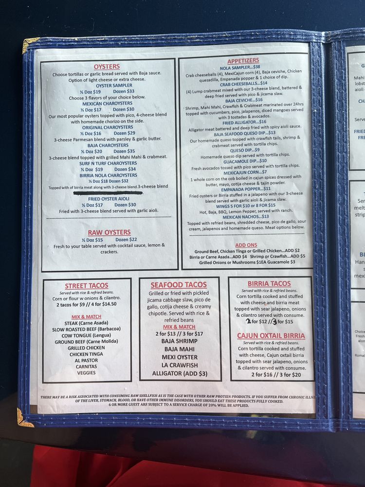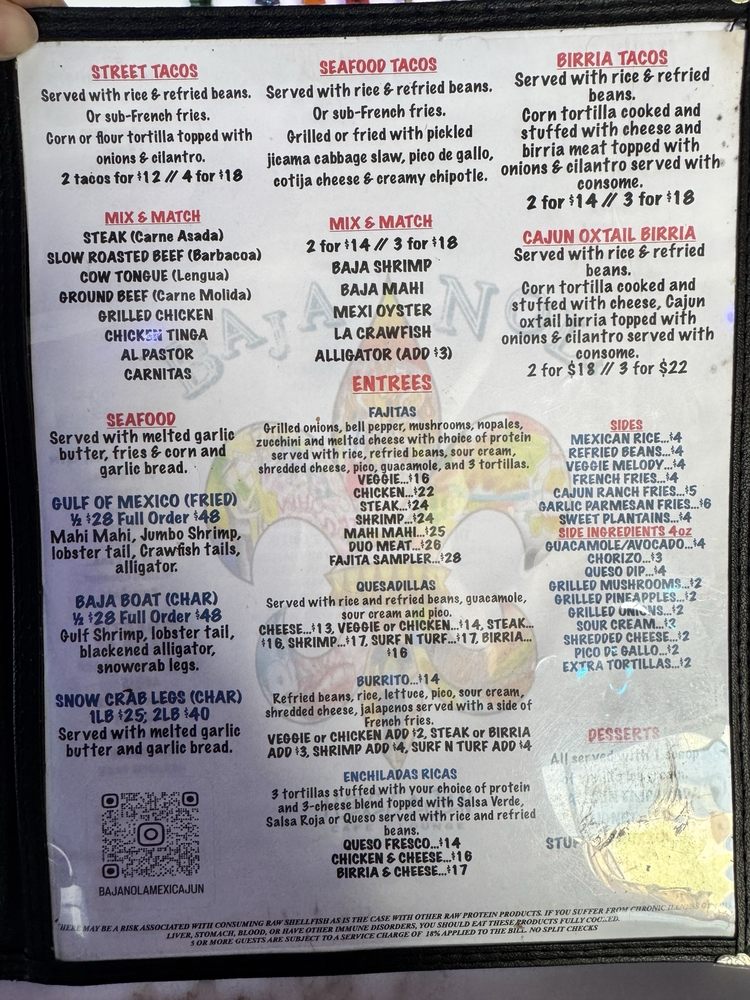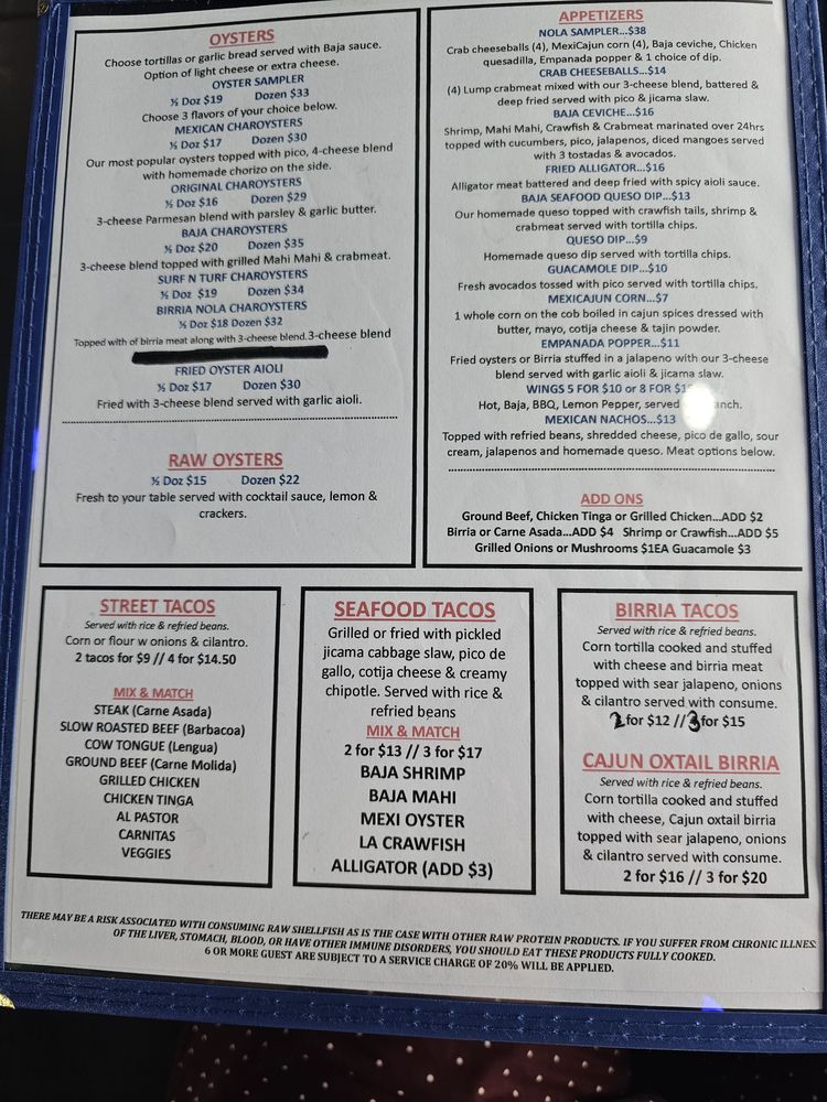 Baja Nola MexiCajun Menu